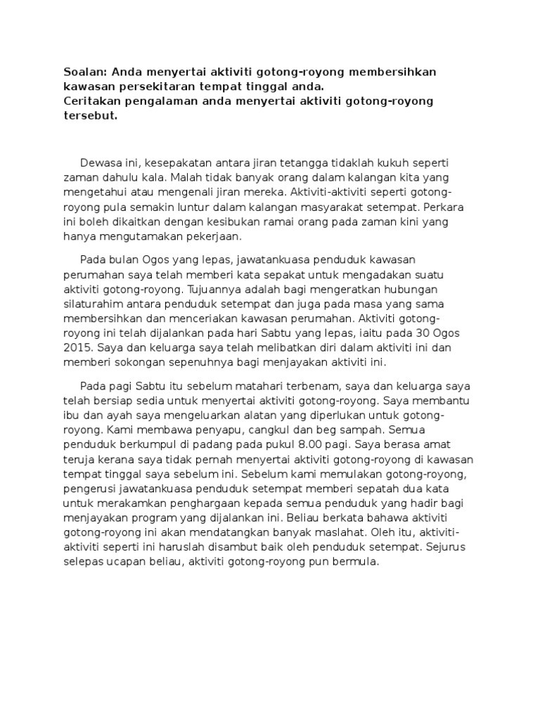 Karangan Pengalaman Aktiviti Gotong Royong Pdf
